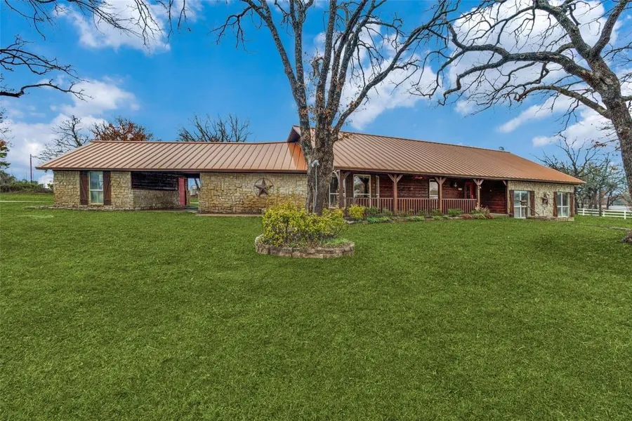 This beautiful home is situated on 3.6 acres and is so charming! In the highly sought after Paradise ISD! This large home has 3 bedrooms and 3.5 bathrooms, all very big! Wait until you see the master closet! As you enter, you will be invited into the open floor plan living room and kitchen. This has a split bedroom concept, with one of the rooms in its own area, perfect as a mother in law suite! Each bedroom has its own bathroom as well. There is a large office at the front of the home that has built in bookcases. The large corner lot includes a pond and full sprinkler system, which runs off the existing well water system. This is your chance to own your own slice of Paradise, get it before it's gone!