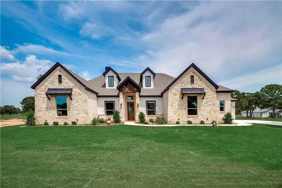 Las Brisas is waiting for you. This neighborhood is well established and is highly desired. Lucky for you it has a new home available. 2019 built, 3,062 sqft home boasts soaring 12' ceilings, a wall of windows, and 8'x16' glass doors to the covered patio. This open concept, clean lines, modern home is very appealing to the eye. This home's four bedroom, three bathroom, with an office layout, is ideal for anyone with a family and guests. You will want to see the flow of the primary bath, closet, and laundry room; it is perfect. The 2-acre treed lot gives you plenty of room to add a pool and shop with room to run. Split bedrooms, Office, guest bedroom, with adjacent bath, large island kitchen with quartz, huge pantry, 42in custom cabinets, gorgeous stone wood burning fireplace, luxury master bath with dual vanities and dual head shower, wifi thermostats, oversized three car garage, and so ...