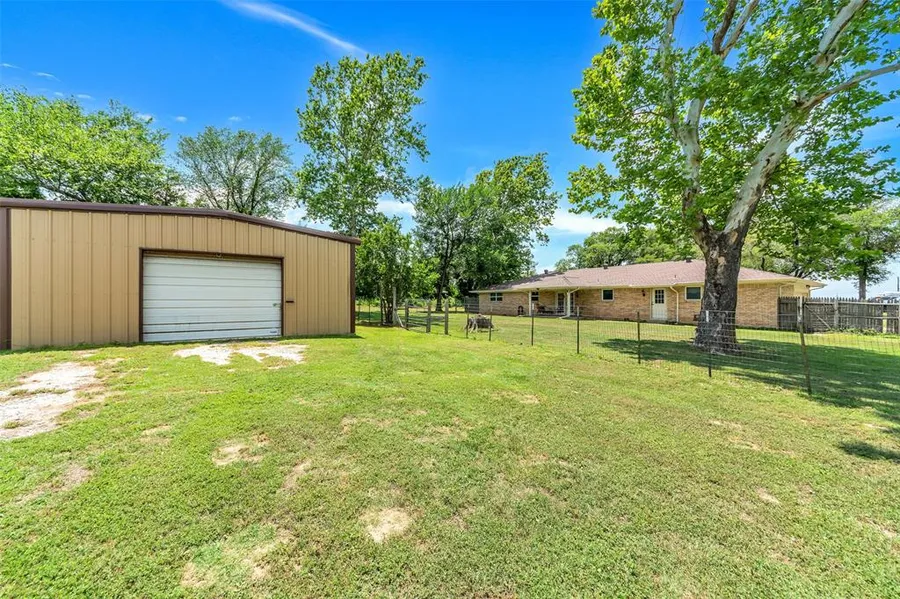SO MANY OPPORTUNITES FOR THIS HOME ON 3 ACRES JUST OFF OF FM 1810. This cozy home has many updates. New roof, paint, added gutters, new LVP flooring 2021, new HVAC 2021, replaced windows 2017. Kitchen offers solid surface countertops, stove 2015, dishwasher 2018, full drawer slide outs in almost all cabinets. living room is cozy with WBFP, wood stackable from garage. Bathrooms have granite. Laundry room that serves as more of a utility room, full size washer dryer with plenty of room for a freezer and has a large storage closet and sink. Comes with a 20x20 shop, with concrete floor, and electricity. Fenced in backyard, peach and pecan trees.