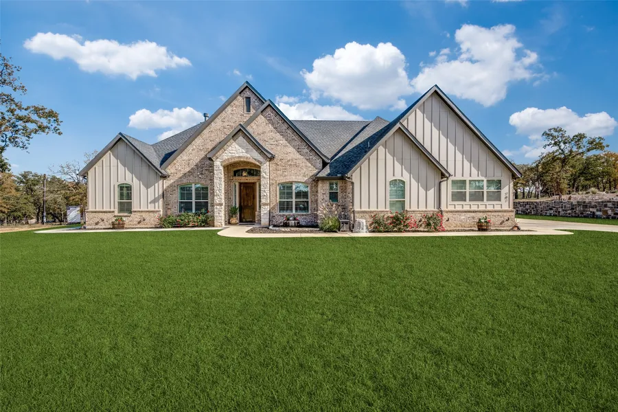 Experience the epitome of country living with this 3 acre private property. This 4 bedroom, (one bedroom is being used as an office) 2.5 bath boasts quartz countertops, a wood burning fireplace, and an open floor plan with a vaulted and beamed living room. The chefs kitchen is complete with an oversized island for an inviting eat-in kitchen with an adjacent formal dining room. Retreat to the spacious primary suite where you will find a spa like bathroom with a walk through shower, separate tub and a large walk-in closet. Enjoy the beauty of the mature oak trees from the back patio equipped with its own fireplace for outdoor relaxation. An extended driveway ensures convenient RV and boat parking. Located in the highly rated Bridgeport ISD and offering quick access to major DFW highways. This property blends comfort, style and is environmentally conscious with the entire residence powered ...