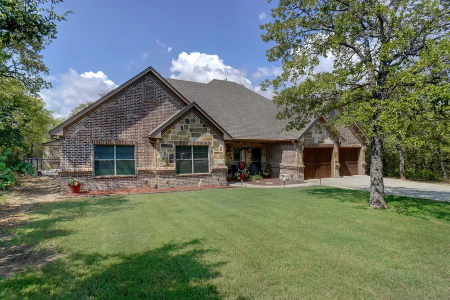 This large custom home sits on a total of 5 lots for seclusion in a wooded area of the Hidden Cove Addition of Runaway Bay. It features a warm family room with WBFP open to the kitchen and dining areas. Split bedrooms with a 4th bedroom and full bath upstairs. Office could double as an extra bedroom. Nicely fenced backyard with a fire pit and storage building.