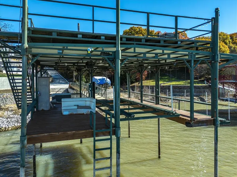 Waterfront Retreat with Modern Comforts and Nice Amenities! Discover your dream waterfront property! This 1104 sq. ft. site-built modular home is perfectly situated on an engineered concrete pad with piers, offering stability and peace of mind. Boasting 3 bedrooms and 2 baths, this home includes modern features like a UVC Halo system in the AC handler for superior air quality and all appliances to make moving in a breeze. Move in ready, no repairs needed to start your enjoyment. Outdoor enthusiasts will love the private cement boat launch and 2-level dock, ideal for boating, fishing, and enjoying serene water views. The tiered, landscaped hillside features engineered retaining walls for beauty and functionality, complemented by a small above ground pool for summer relaxation. Safety is paramount with a 6'x6'x7.7' F5-rated Safe Shed tornado shelter, ensuring peace of mind during storm sea...