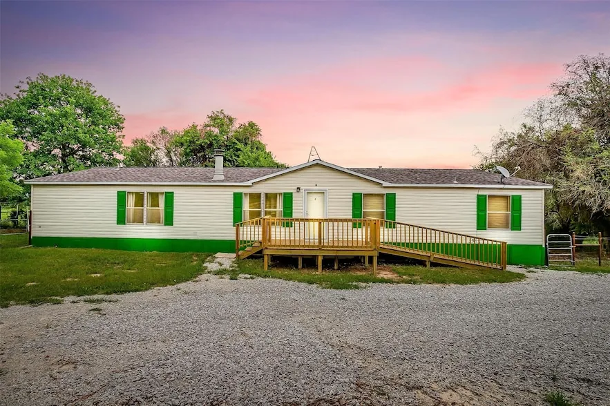 Discover the perfect blend of space, comfort, and unrestricted country living with this well-cared-for double-wide mobile home sitting on 1.3 acres of heavily treed land. Located outside city limits, this property offers complete freedom, NO HOA, no deed restrictions, and livestock is welcome, making it ideal for those seeking a rural retreat. Step inside this spacious 2,176 sq. ft. home, featuring 5 bedrooms and 3 full bathrooms. Thoughtfully maintained, it boasts new skirting around the house with fresh paint, enhancing its curb appeal. Enjoy outdoor living with new decks on all porches, perfect for relaxing and entertaining. Additionally, the property includes a large storage shed, providing ample space for tools, equipment, or hobbies. Whether you're looking for a private homestead, an investment opportunity, or simply more space to call your own, this unrestricted acreage has endless potential.