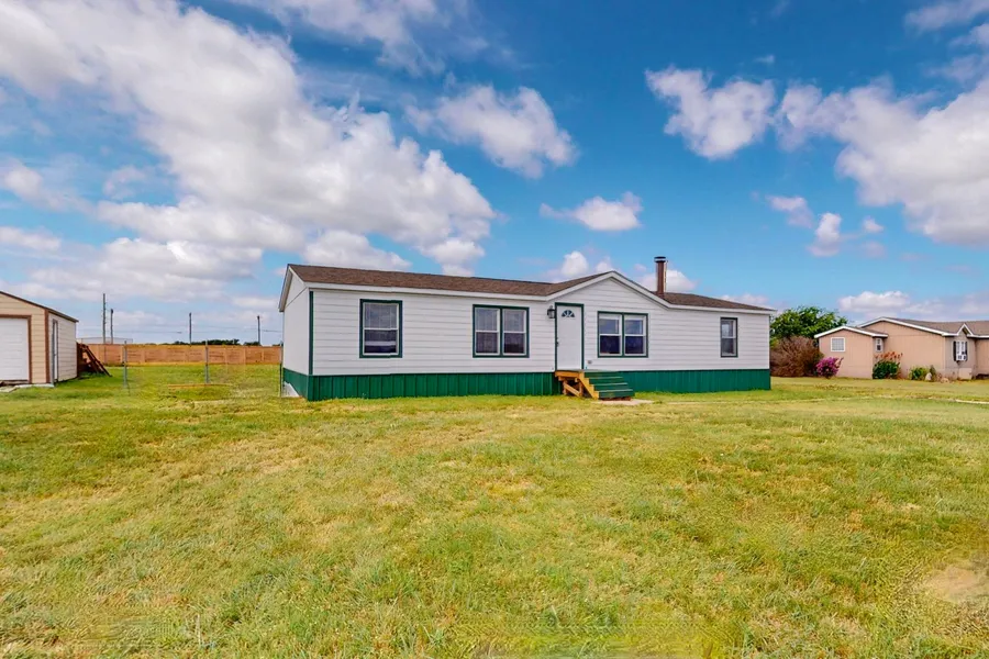 NEW LOWER PRICE - ACREAGE LIVING MINUTES FROM THE CITY! Welcome to 1406 Grand Prix Court in Rhome, TX, where peaceful country living meets modern comfort. Perfectly located just 30 seconds from Highway 114 and 5 minutes from Texas Motor Speedway, this beautifully updated 4-bedroom, 2-bath home sits on over an acre at the end of a quiet cul-de-sac-offering space, privacy, and convenience. Enjoy an open-concept layout ideal for entertaining, with a spacious family room, large kitchen, and generous dining area. The primary suite offers a relaxing retreat. Recent updates include a new roof and windows (2024), fresh siding, skirting, paint, and seals (Nov 2024), and new carpet (2022). This home is move-in ready and impeccably maintained. Outside, take in the wide-open space and mature trees-perfect for gardening, pets, or evening gatherings under the stars. A detached garage workshop provides extra space for hobbies or storage. Rhome is a growing small-town community known for friendly neighbors, low taxes, and peaceful living-just minutes from Fort Worth, Alliance Town Center, and major employers. If you've been searching for land, comfort, and convenience without sacrificing modern updates, this home is your perfect match. Schedule your showing today and experience the best of North Texas acreage living at 1406 Grand Prix Court.