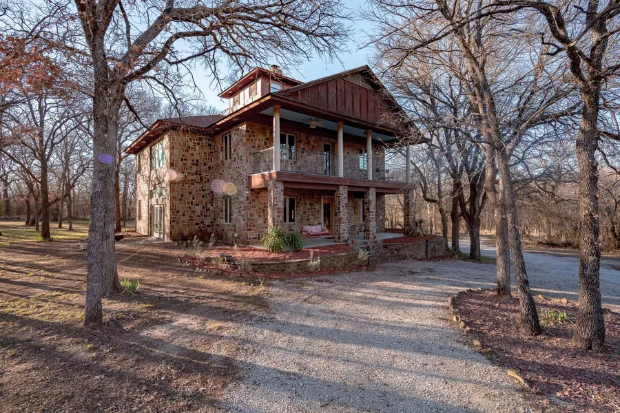 If you are looking for a truly unique, custom home in the peace and quiet of the country, yet close to all city amenities, this is the home for you, The style and finishes of this home would easily be seen in Ski Country. Each room is finished with hand crafted wood paneling including Red Oak, Cherry, Walnut, Beech, and Red Gum. All interior doors are hand crafted and fitted with antique brass hardware as well as hardwood flooring and Pella windows installed throughout. With all the custom features to this home it's hard not to notice the stunning double sided, floor to ceiling, wood burning fireplace and centerpiece handcrafted free standing spiral staircase. Additionally, the home is equipped with a Geo Thermal HVAC. On nearly 25 acres, a 40'x50' Metal workshop, RV parking and 30 amp power. With 2 balconies, 2 porches, patio and rooftop deck, you can easily watch the deer, turkey, and owls, making this the perfect retreat for family and friends. This is a true one of a kind place to call home.