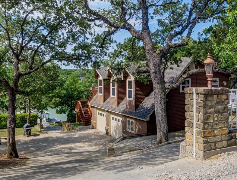This lake house is a Lake Bridgeport entertainer's dream. Outside, you will find an outdoor kitchen, hand-laid flagstone rock patio and walkways, stone retaining walls, a fire pit, fireplace, workshop, and 30x30 boat dock with a 6500 lbs plus load capacity hydro hoist boat lift, and three wave runner lifts. Bring all the toys you got to enjoy this ready-to-go dock. This waterfront home boasts alder wood floors, granite countertops, stainless Steele appliances, and a game room for all your guests. The patios have a great view and are so peaceful while listening to the countryside sounds. This cove is known for its calm water and great views. When the lake is full, and even now, you can access your dock conveniently. El Lago Estates is living the best life, the country Lake life. There is lots of wildlife, waterfowl, great fishing, and even better boating. Visit this lake home sitting on the best-kept secret, Lake Bridgeport.