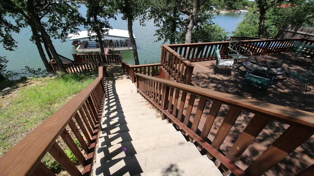 This is a Beautiful home on Lake Bridgeport. Featuring 1486 Square feet, home has open kitchen, living and dining areas, 3 bedrooms, 4 baths, floors are porcelain, water system is Reversed Osmosis system throughout the home with a 300 gallon holding tank, maintenance / storage room, kitchen has built in microwave, range, dishwasher, refrigerator with water to fridge, handicapped bathroom with shower handicapped access, handicapped access to home, ceiling fans, full laundry with stacking front load washer and dryer, home is all electric, covered porch, 2 levels of decking, covered balcony, separate deck for spa, fire pit, Dock with 2 boat slips with hoists and a side personal water craft (jet ski) hoist and a swim platform. Home was remodeled in 2015. The property has become a popular place on Lake Bridgeport.. View the pictures and you will be able to see why this lake front property is so popular. There is a vacant lot behind to this property that is included in the sale of this property.