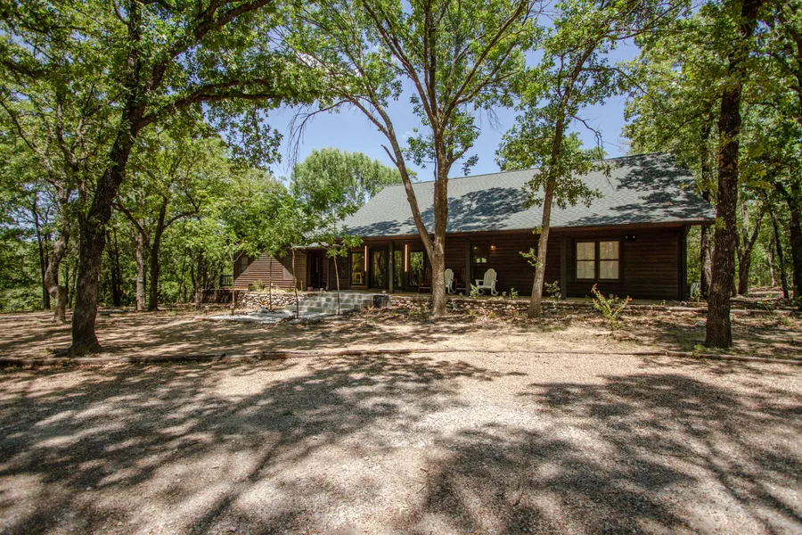The 3:2 custom home is nestled among large, mature hardwoods. The cathedral ceilings and open layout provide for a spacious setting. Open den, kitchen, eating area upon entering with the master on the east wing and two bedrooms on the west wing. Beautiful dining room ideal for entertaining. The covered patio offers quietness and serenity due the hardwoods and dense vegetation surrounding the home.