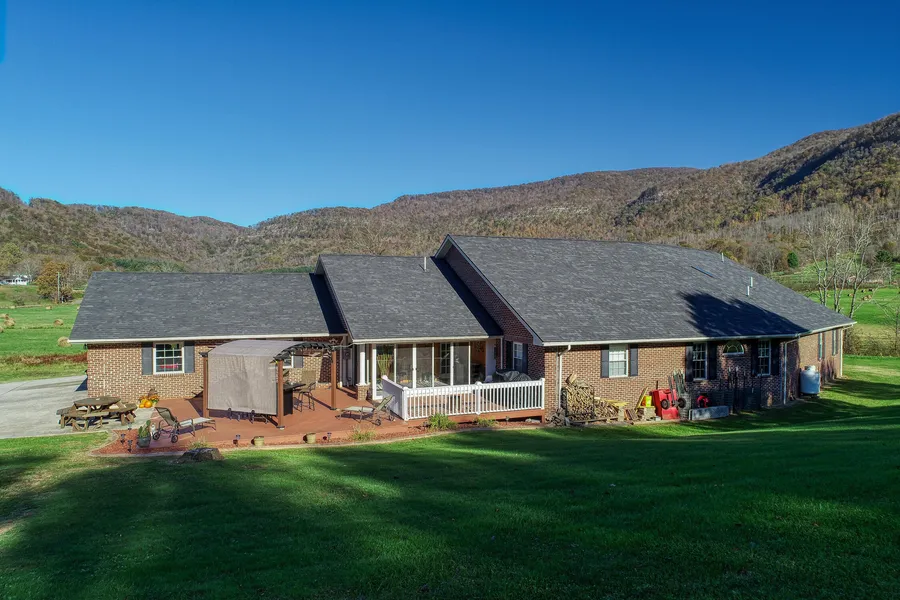 Location!! Owners have separated the two homes and kept the majority of the land with this beautiful brick! Featuring vaulted entry, separate owners wing, large rooms, many additional rooms to allow new owners to have home offices, home gym, home school room or anything your heart desires. Outside you will find beautiful mountain views, a flowing creek and over 8 acres to spread out and enjoy. Buyers and buyers agents to verify all information, subject to E&O