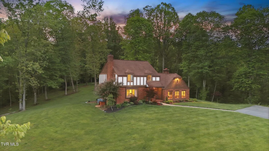 Step into timeless elegance with this beautifully appointed English Tudor that seamlessly blends classic charm with modern luxury. The main floor boasts a generous primary suite featuring a luxurious steam shower-your private spa at home. The chef-inspired kitchen is a showstopper, outfitted with updated cabinetry, gleaming granite countertops, a Wolf range, and a Sub-Zero refrigerator-perfect for entertaining or indulging your culinary passions. Sunlight floods the inviting living room through expansive windows, highlighting a cozy gas fireplace-ideal for relaxing evenings. A spacious dining room offers plenty of room for gatherings and celebrations. Upstairs, you'll find four additional bedrooms, including a second primary suite, offering comfort and flexibility for family or guests. Outside, the property is just as captivating. Enjoy evenings around the fire pit, host gatherings on the concrete patio, or take in the beautifully landscaped grounds. A detached garage adds functionality, while the setting offers exceptional privacy, yet remains just minutes from town. With approximately 4 acres, you will have tons of space, and additional acreage is available to purchase separately. This is more than a home-it's a lifestyle.