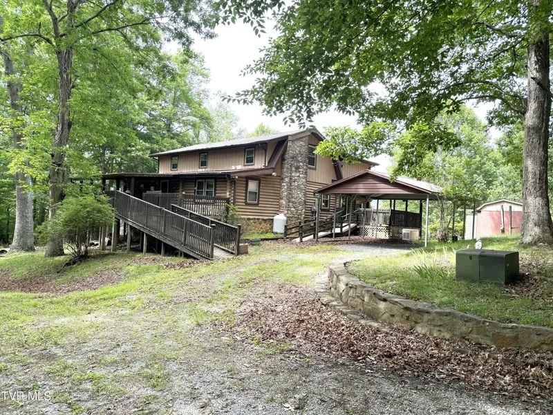 Sprawling 4+ bedrooms, 2 1/2 baths, 3870 sq. ft. log and stone home on 1.99 secluded acres. Nestled in the shade of huge oak trees with beautiful views of the surrounding mountains and valleys that Powell Valley is famous for. Knotty pine floors and ceilings and log walls throughout the interior. Large windows bring the outdoors in during the chilly days of winter and lots of covered decking allows plenty of space for warm summer evening entertaining with family and friends. The open floor plan boasts a large kitchen and bar/butler's pantry with plentiful cabinets and counters, an adjacent dining room and living room with stone fireplace plus a bonus room off the dining room. There is also a private den down the hallway which could be another bedroom. Off the living room there is an additional room spanning most of the length of the front deck. The second floor has the same wide-board knotty pine floors in all the huge bedrooms and a large bathroom and laundry area. The finished basement has another large bathroom, an open area, a bedroom, a utility room and a large storage area. The wide hallway leads through a large French door to an attached concrete patio. Beside the French door, there is a safe room in case of inclement weather. A metal roof, propane furnace, propane fueled Generac whole-home generator, public water and private septic assure year-round comfort. The only thing missing is a large family to fill it! Shown by appointment only to prequalified buyers.