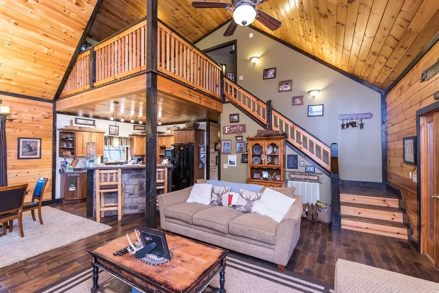 Take in the majestic views from the gorgeous wrap-around porch. Nestled in the mountains, yet also a short 12 minute drive to town, this area offers hiking, climbing, canoeing, kayaking, fishing, off-roading and so much more. This beautiful cabin boasts a master bedroom on the 1st floor, two large bedrooms on the 2nd floor plus a bonus loft area. In addition to large living areas, walk-in closets, a stone fireplace and gorgeous walk-in shower. The open floor plan with overlooking balcony is a must see!!! This completely fenced 35-acre homestead includes a heated, detached garage, a open pole barn with tack room, a pond, auto-waterer, both pasture and timber, and much much more. This must-see cabin is perfect for a primary residence, getaway home, or investment opportunity. The rental home and one acre at the entrance to the property is also for sale. It is currently rented and provides a steady rental income source.