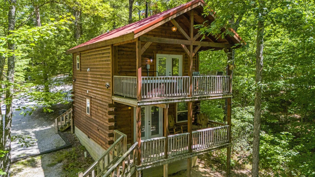 Looking for the perfect cabin for your investment portfolio ? Look no further than Love Shack, a cozy hideaway for one or two couples looking to relax and rewind. This cabin has one King bed in the loft area with double doors that lead out to the second floor deck and hot tub. On the main floor, the living room features an electric fireplace. A pull-out couch provides extra room for tag-along guests or a nice place to binge watch your favorite shows on the flat-screen television. A kitchen with full-size appliances is more than enough room to cook a meal and share a morning cup of coffee together. There's also a convenient half bath on the main floor. Situated toward the back of the highly desired Cliffview Resort near a small fishing pond, this cabin's setting is as enjoyable as the cabin itself.