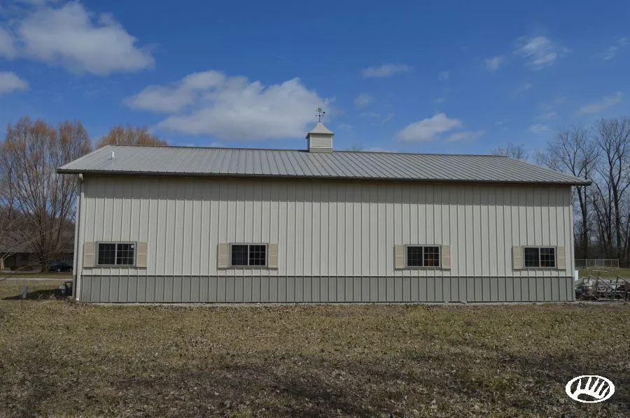 - 40x60 Morton building with concrete floors, heated, bathroom, 12x14 overhead doors and patio with covered canopy