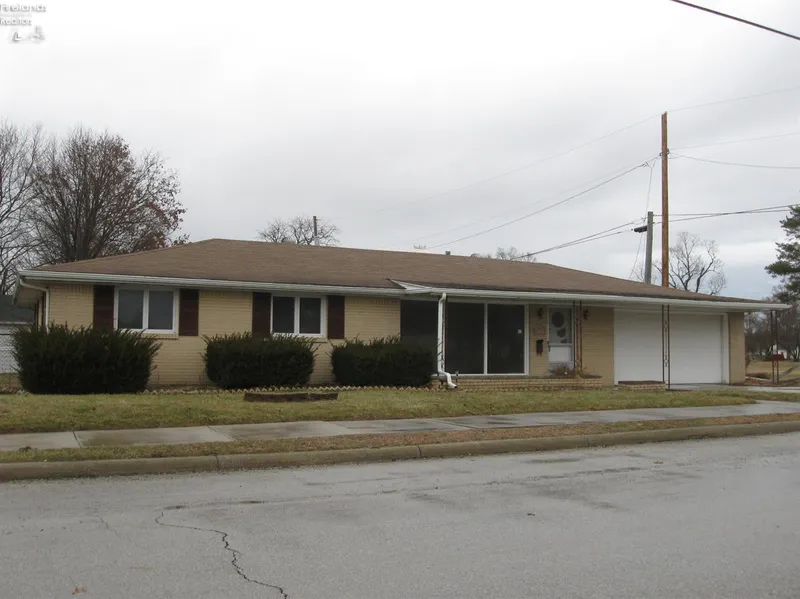 Brick ranch style home with a 1 1/2 car attached garage and an additional garage/workshop out back. Fenced in back yard. Enter into the large living room with big windows allowing plenty of sunlight in. The dining room has sliding glass doors leading out to the patio. 3 nice size bedrooms all with good closet space. An updated full bathroom near the bedrooms. At the other end of the house is a family room with a built in desk and shelving. The laundry room includes a half bath. The furnace and water heater are located in the garage.