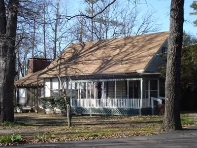 Tall windows adorn this bright 3/3/2 Carport one and one half story home on 2 wooded fenced acres. Beautiful hardwood floors, carpet and tile. Family room with a gas log fireplace that can be easily converted to wood burning, french doors and a full bath. Tile countertops in kitchen, tiled island with cooktop, plenty of cabinet space, all appliances stay. Living room has gas log fireplace, area for large screen TV. Office area with desk and bookcase, upstairs bedroom with a sitting area and large bathroom with a garden tub and sitting area. Paved driveway, 2 car detached carport, corner property is totally fenced with gate.Well maintained home and property.