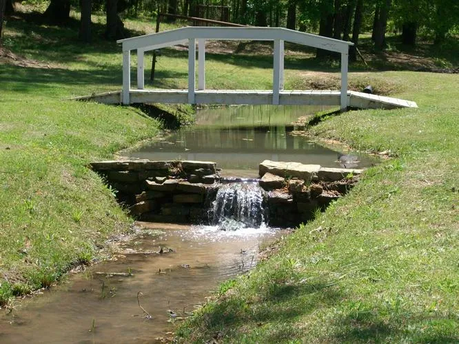 Very private & remote property located at the end of the road. Property includes a 3/2 cottage with hardy-board siding, 720 Sq/Ft guest quarters above a verynice shop that has water & electric. 3 Large stocked fishing ponds, 23.6 acres with mature woods and lots of wildlife! Home features granite countertops,crown moulding in every room with stunning views in every direction. There are waterfalls & a spring that feeds 83k gallons of water per day.