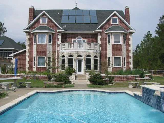 The home is Oxford Red Brick with Texas Limestone and a stairway tower and true quoin-work at the corners of the house. Floors in homes are heated.