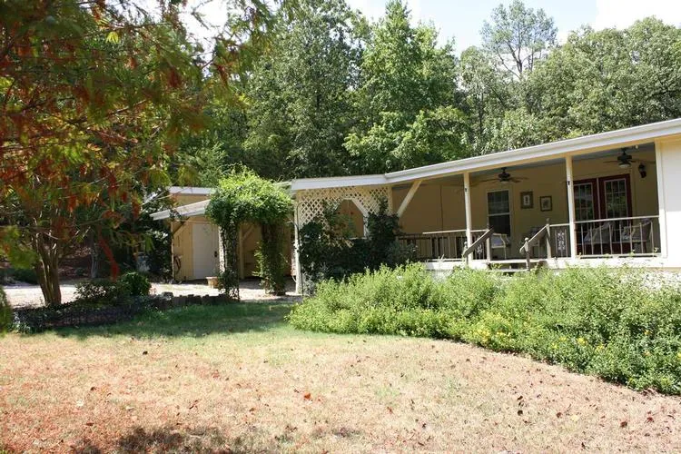 Complete tranquility awaits you in this cozy home tucked deep in the East Texas hardwoods on 6.9 secluded acres. In immaculate, ready to move in condition, this labor of love 2 bedroom 2 bath is complete with a beautiful gourmet kitchen with custom cabinets, stainless appliances and bead board beamed ceilings, tile flooring in the kitchen and baths, hardwood flooring in the living, dining and bedrooms. French doors and ceiling fans throughout, each bedroom has its own beautiful covered porch for the morning coffee watching the wild. In addition, there is a large covered front porch, wonderful for additional entertaining as well as a large 2 leveled deck off the kitchen which leads to a coy pond. While the house has 1458 sq. ft. h/c, there is 2840 sq ft under roof. Constructed with concrete siding, all the gutters are covered and water is redirected through French drains. Off the carport there is an additional 18 x 16 office, fully insulated with a window unit. For the gardener, the entire property is landscaped with perennials and has an extensive rainwater system for irrigation as well as an outdoor sink/work station and wonderful tiered garden. Besides the office, there is also an adorable 10 x 12 hobby shop, also fully insulated and wired for electricity and a window unit. The property also includes a 17 x 20 workshop and a 30 x 18 storage building.