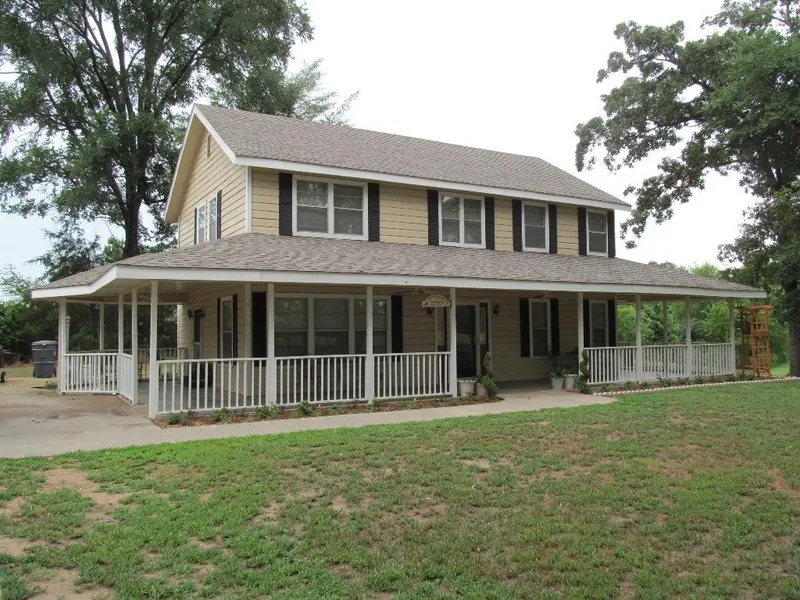 Home features an 8' covered porch across the front & sides, along with a 2 car carport & 2 car garage.
