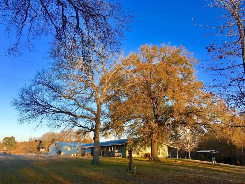 Winnsboro, Texas, Wood County, 3 Bedroom, 2 Bath metal Country Home that features large rooms, 9' ceilings and front & back covered porches. 2 car over-sized garage with workroom, 30x40 shop building with drive through 10' doors, 20x16 metal building & large chicken coop with metal roof all on 6.23 acres of open pasture, woods, pond & running creek. The master suite is large with a sitting area & bath with his & hers walk-in closets, glass & marble shower, antique tub, dressing area & marble sink. The living room, dining & kitchen are all open together with wood burning stove & an unbelievable amount of room. The property has a winding concrete drive & is located towards the back of the property. With the metal building providing extra insulation, the utility bills will be very low. Put this one on your list!