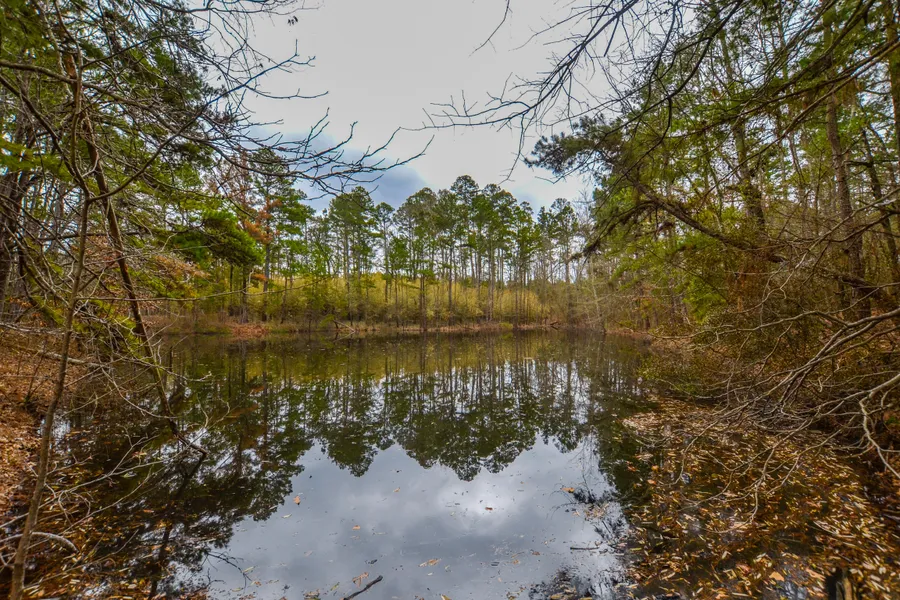 Large pond with additional pond amongst the gently rolling land containing hardwoods and a creek bottom that meanders through the landscape which is an attractive draw to the wildlife including whitetail deer, hogs, and more