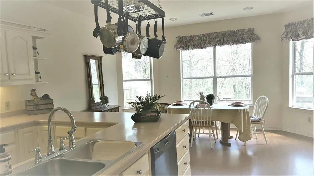 Custom-built home on 17+- acres. Heavily wooded offering privacy. Windows galore looking out the back with tons of natural light & impeccable views that you must see! 4BR-2.5BA, Split BA. Gourmet kitchen, cabinets galore, blt-in desk, sitting brkf bar, large breakfast area. Formal dining w storage closet. Large liv area w built-ins,Wbfp w wood mantle,Floors Lam & Carpet, Ctr Vac Syst, Oversized mstr suite w tray ceilings, mstr bath w jetted tub, separate shwr & oversized closet. Lg decked patio. Closets w storage space. 24x24 Metal Shop on slab w elect. Portable Car Port. Private large pond w deck that will be so much fun to fish at. Dogwood & pine trees are scenic.Close to Lake Holbrook,Lake Fork & Club Lake.