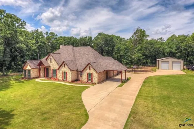 Gorgeous custom home in Mineola ISD! Almost 18 acres, 3,533sqft house, & 30X50 insulated shop! Home features 4 Bedrooms, office/media room, spacious utility room w/ granite counters, built-in cabinets & desk, wet bar, massive open living area w/ vaulted ceilings, formal dining, breakfast area, large island, & hand scraped wood flooring, 10-12 ft ceilings throughout, & more! Master suite boast trayed ceiling, sitting area, oversized walk-in closet w/ built-ins, double vanity, walk-in shower, & deep garden tub! Lots of storage throughout home. Master Split. Two bedrooms share a "Jack-&-Jill" bathroom w/ double vanity & walk-in shower. Both BR's have walk-in in closets and 10' ceilings. The 4th bedroom has 10ft ceiling, walk-in closet , & it's own bathroom with tub/shower. 1/2 bath in hall near living area. There is an oversized double garage w/ nice storage room, also a pull-through carpor...