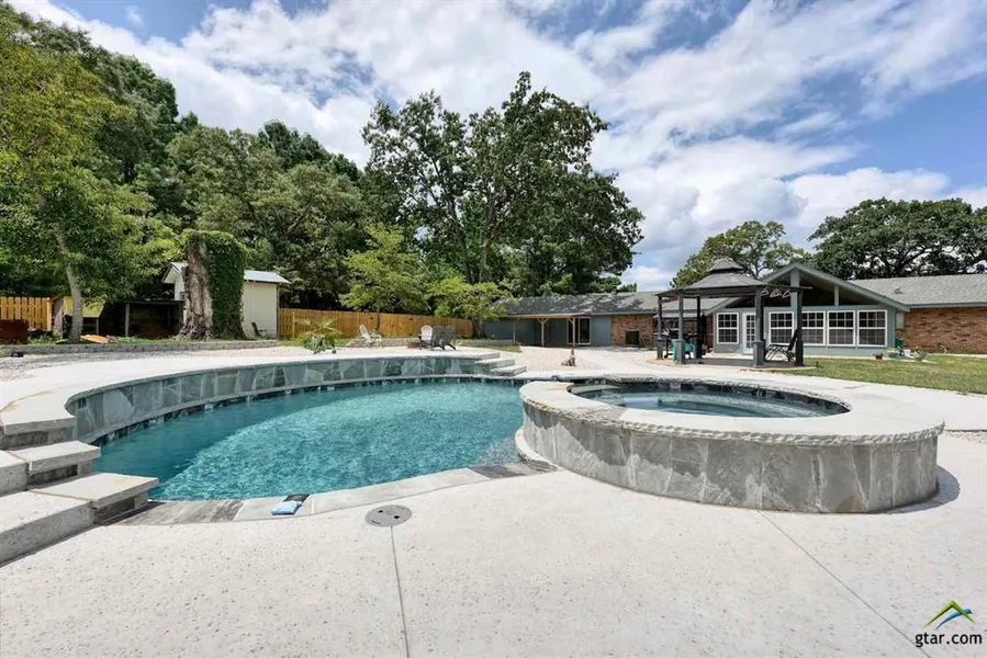 Welcome to your private piece of paradise right here in East Texas. Located on over 13 acres, this property offers everything on your check list. Main home with split floor plan, offering 3 bedrooms and 2 full baths, plus and additional mother-in-law suite with bedroom, full bath and kitchenette. Large living area with cathedral ceilings and beautiful wood burning fireplace.Two sets of new sliding glass doors flood the area with natural light. Open kitchen and eating area with granite counter tops that has access to the enclosed sun room. The gated entrance leads you onto the circle drive and covered parking area. Out back you'll find a brand new in ground pool perfect for hosting your friends and family. New fencing and cross fencing for animals. About 5 cleared acres with the rest heavily wooded.