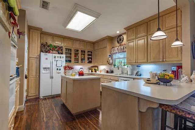 Beautiful lake front property with over 2 acres. Enjoy lake views from one of 3 backyard decks, patios or outside gathering areas - you'll see stunning sunsets in the evening. And watch the moon as it sits over the lake. This home truly is perfect for entertaining family and friends. Enter into the family area with windows that look out to the lake. The open kitchen-dining-family areas all lead to the deck and lake. There's a lovely stone fireplace for those cool winter evenings. The primary suite is down the hall to the left and has its own private deck with lake views. The split plan has two guest bedrooms, each with its own lavatory and includes another large gathering room with fireplace and a private deck area overlooking the lake. The guest bathroom is accessible from each bedroom. Luxury vinyl flooring in the main gathering area with carpet in the bedrooms. The secondary gathering...