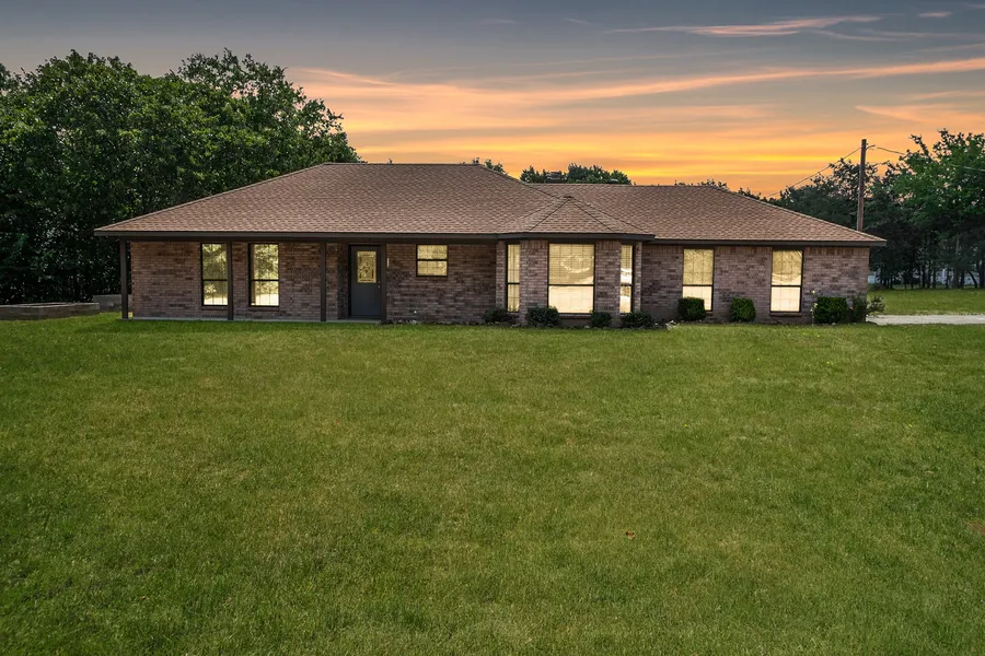 Nestled on a spacious 2+ acre lot, this impeccably maintained Hawkins home offers the perfect blend of comfort and convenience. This home features an oversized garage and carport perfect for RV. A true gem for outdoor enthusiasts. Large front porch, where you can imagine yourself relaxing in a couple of rocking chairs as you take in the serene surroundings. Inside, the open living and dining area features timeless bay windows that compliment the home with natural light. The kitchen has been tastefully updated with stainless appliances, abundant cabinet and counter space, making it a true cook's delight. Throughout the home, you'll find beautiful luxury vinyl flooring and ceramic tile, perfect for easy maintenance with zero carpet in sight.Primary suite with walk-in closets, dual sinks, water closet and much more. Remodeled in 2021, see feature sheet for full list of updates including roof, AC and more! Minutes away from golf course and lakes. Fenced backyard, mature trees.