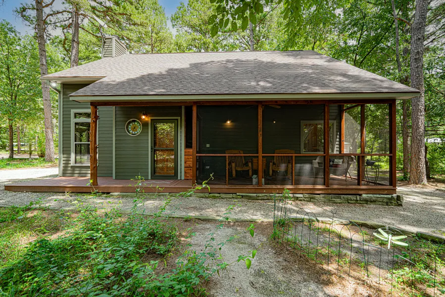 Lovely Woodland Cottage in Horseshoe Bend Lake Community. Embrace the tranquility and natural beauty of this charming woodland cottage, nestled on 5 acres in a scenic and wildlife-rich setting. Located within the picturesque Horseshoe Bend Lake community, this home offers a perfect blend of rustic charm and modern amenities. Property Features: Scenic Drive: Wind down the scenic drive to your private retreat, surrounded by nature. Bedrooms and Baths: 3 bedrooms, 2.5 baths, plus a cozy sleeping loft. Living Area: The family room features a stunning stone wood-burning fireplace with a cedar mantle and vaulted pine ceilings, creating a warm and inviting atmosphere. Flooring: Tile floors throughout the house provide durability and easy maintenance. Kitchen: A galley kitchen equipped with stainless appliances, a gas stove, and quartzite countertops offers a stylish and functional space for cooking. Custom Blinds: Throughout the house, custom blinds add a touch of elegance and privacy. Screened Porch: Enjoy the sights and sounds of nature from the comfort of the screened porch. Additional Amenities: Garage and Workshop: A 30x32 two-car garage with workshop space offers ample room for vehicles and projects. There's also a small area to winter your plants. New Roof and Exterior Paint: The home features a new roof installed in 2022 and freshly painted exterior, ensuring low maintenance and peace of mind. Trails: Explore the 5 acres of wooded property with trails that wind through the landscape, perfect for walking, hiking, or enjoying the abundant wildlife. Community: Horseshoe Bend: This beautiful lake community offers a serene and picturesque environment, ideal for those who love outdoor activities and the charm of lake living. Ideal for: Nature Lovers: Enjoy the abundant wildlife and natural beauty of the wooded property.