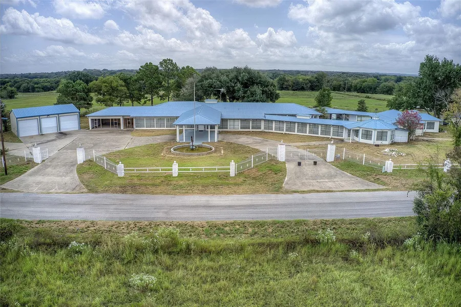 WOW-- Come get a great deal in Texas! 2 miles to world famous Lake Fork! The possibilities are endless& NO restrictions: AirBnb, home school, home based business, multi-tenant, mother-in-law, multi-generational & more! Main house has 7 BR & 4 baths, 2 LR, Kitchen with breakfast bar, cherry cabinets, granite, and SS appliances. 2 Primary suites with outside entrances & ensuite bath. Atrium hallways curve around the pool, creating a private courtyard for entertaining. Other side of pool is a 1bd apartment with LR-open kitchen, Private BR and bath. Also, another single room & bath for apt, gym or office. 2 laundry areas. Exterior backyard is great for gardens and games! A beautiful fountain out front, plus covered portico add charm. 30 x40 insulated Workshop with 10-foot roll-up doors. RV or boat carport, sep fenced large covered equipment storage & 2 storage buildings. Sandy soil! Enjoy sh...