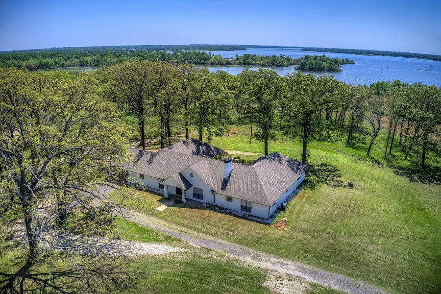 PRICED TO SELL!!! YOUTUBE Video: 579 County Road 1843, Yantis, TX 75497, Live East Texas. Tucked away at the end of a quiet road, this secluded 10 acres of rolling hills offers waterfront on world famous Lake Fork. Situated atop the picturesque Longbranch Cove of Glade Creek, the land is a nature lover's dream—whitetail deer roam freely, and the towering Oak trees create a respite from the hustle of city life. Enjoy fishing off your own dock or launch a kayak to explore the cove. Inside, the home beautifully complements the surrounding landscape with its soaring ceilings & wide-open spaces. Expansive windows throughout fill the home with natural light and offer stunning views of the outdoors. The beautiful Saltillo tile floors and LVP flooring are easy to maintain, while a cozy wood-burning fireplace creates a warm, inviting atmosphere. An open kitchen features numerous storage options, hardwood cabinets, a breakfast bar, and plenty of space for dining. You will love the spacious primary suite featuring French doors that lead to the deck- and the primary bath is a retreat in itself, with a modern soaking tub that overlooks the water and fresh, white updates throughout. The half bath is conveniently located for guests down the hall with a split-bedroom plan and spacious secondary bedrooms that ensure privacy. French doors from the living space invite you to step out onto the deck and enjoy peaceful mornings sipping coffee and be amazed by starry skies at night. Endless possibilities in the old barn for hobby shed, greenhouse, or storage space, adding to the charm and utility of the property. Bring your vision—whether you want to raise animals, apply for an Ag Exemption, or simply enjoy the natural lake front beauty. Located 15 minutes from multiple charming towns with boutiques, spas, wine bars, and festivals, and only 100 mi to DFW, you'll be glad you came. Whether you're looking for a relaxing retreat or a place to call home, this East Texas gem is a true sanctuary. Additional approx 3 acres of useable acres is SRA land. Furniture can stay.