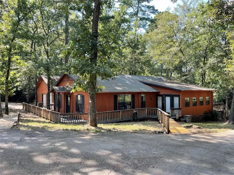 Discover the epitome of tranquil living in the Holly Lake Ranch community. This1,641 sq ft home is nestled on over 1.4 acres of wooded land, comprising three lots. The additional lots offer possibilities for expansion. Immerse yourself in nature with views from the spacious windows in the living room or from one of the two inviting decks. The open-concept design of this three-bedroom, three-bathroom home, complete with open closets, ensures ample space for entertaining. Recent updates include a new dishwasher, breakfast counter, and renovated bathroom counters, enhancing both functionality and style. Numerous possibilities for efficient use of the two adjoined bedrooms. Possibly an in-law suite or child's room with a bonus playroom. The two-car garage, equipped with window units, offers a workshop or additional storage. Enjoy the amenities, including tennis and pickleball courts, swimm...
