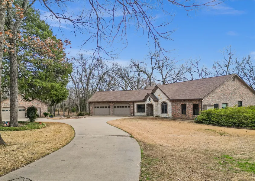 Remarkable property off Lake Fork with stunning panoramic lake views! Instant curb appeal with private cul-de-sac and circle drive for easy entry when you are ready to park the boat or have a gathering. Property is perfectly situated on 10 acres including leaseback that provides over 1,000 ft of shoreline. Large picture frame windows with great views. Stone fireplace, impressive custom woodwork throughout, complemented by hand scraped hardwood floors. Fully remodeled Chefs kitchen with commercial appliances. Generous both inside and out with Office, Sunroom, Hobby Room, 4 Car Garage and abundant storage. Covered patio with resort-like views, greenhouse and more! Private dock with flexibility to customize should you want to expand in the future to add a full boat house. Charming neighborhood of Lost Creek Estates with private boat ramp. Mature trees and abundant wildlife.