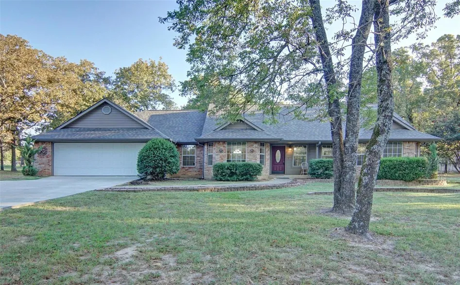 This charming 1,832 SF brick home sits on a serene 1.1-acre lot in the peaceful Wolf Creek Bay subdivision, just a short golf cart ride away from your waterfront pier lots with electrical hookups, offering convenient access to Lake Fork s renowned waters. Perfectly situated across the road from The Links at Land s End, you'll enjoy proximity to great golf and dining at the on-site restaurant. Recently updated, this home features fresh paint from floor to ceiling and new waterproof vinyl plank flooring plus wood blinds throughout, giving it a modern and refreshed look. The spacious, open floor plan includes a large kitchen with ample cabinet space, perfect for preparing meals and entertaining. The master suite is thoughtfully split from the two additional bedrooms for added privacy, and a study offers the perfect space for a home office or additional living area. Outside is a 12 x 20 s...