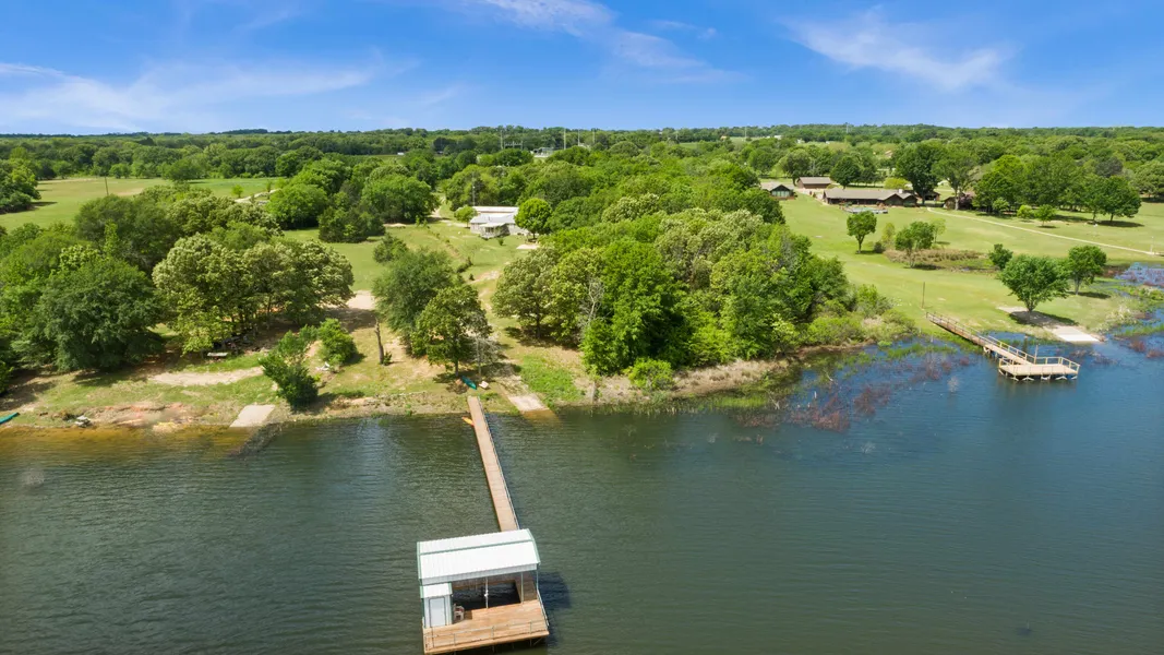 Welcome home to over 300 ft of shoreline on Lake Fork! This is an incredible opportunity to have a Fisherman's Dream on Lake Fork, all with a primary home, guest house, 2100 sq ft workshop, boat house with lift and new fishing pier, on nearly 6 acres of land & 5.5 acres of additional leaseback from the River Authority. Perfect as your dream home or as a weekend getaway, youll find a large kitchen, cozy living and dining, and big bedrooms in the main house that will make your family feel right at home! With 4 bedrooms and 2.5 baths, a bright sunroom with easy open windows and a pergola and deck from composite wood (lasts forever!), youll have plenty of room to relax. The large kitchen has great counter space, storage, and room for an island and is open to the living and dining areas, complete with big windows to the sunroom and an inviting fireplace. A jack-n-jill bath between two bedrooms has lots of storage, the half bath opens to the laundry room, and the en-suite bath for the master has separate vanities, a garden soaking tub, and separate shower. A 4-stall carport attached to the house means a covered front entry plus easy access to the 2100 sq ft 70x30 workshop and barn with electrical, 3 sliding doors, and concrete slab. The guest house will be a great spot for visiting family or could be rented out to traveling fishermenit has its own water and electric meters! One bedroom, a wood burning stove, brand new walk-in shower, W/D connections, fresh paint, and a full kitchen plus a 2-car carport make the guest house efficient and a great addition. Spend your days down at the boat house complete with an electric lift and new cedar-planked fishing pier! A circular drive from the workshop to a private concrete boat ramp next to the fishing pier makes access to Lake Fork easy. The land is fenced and cross-fenced, private, and has a gated entrance. Dont miss your chance to own property on the best bass fishing lake in Texas! This one won't last. Call today!