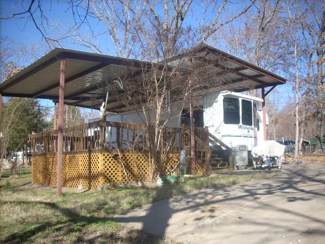 ** Under Contract ** Sit on your front deck and enjoy the gorgeous views of Lake Fork on these waterview lots with towering trees, 2005 Wildwood 40' RV, metal covered wood deck, separate covered concrete picnic area, four car concrete parking and two driveways all across the street from the community fishing pier and boat launch. This neat, clean and ready for move in RV has a fireplace in the living room with a sit down bar, two bay windows and carpet. The kitchen has a double sink, full size frig, faux wood vinyl flooring and a pantry. The bathroom has a shower and small tub, utility closet and plenty of built-ins. And the bedroom has great closet space and a built-in desk. This gated community also has a community swimming pool, hot tub and club house. Enjoy Lake Fork today.