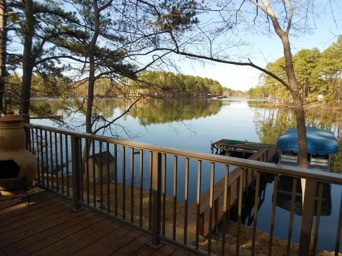 GORGEOUS WATERFRONT ON 1.626 ACRES ! BEAUTIFUL LAKE VIEWS OF THE NICEST PART OF THE LAKE ! IMMACULATE, TOTALLY REMODELED, 2 LOTS...ONE LOT IS WOODED AND CAN BE USED AS SECOND HOME. 2 LIVING AREAS, 3 BEDROOMS, 2 BATHS, 2 CAR GARAGE, STORAGE BUILDING, 2 BOAT AND FISHING DOCKS, BOAT LIFT, FABULOUS HUGE WOODEN COVERED DECK, OPEN FLOOR PLAN, SPLIT BEDROOM PLAN, STONE FIREPLACE, CORIAN COUNTERTOPS, ALL APPLIANCES UPDATED, BUILT IN WINE COOLER, WOOD FLOORS & TILE IN LIVING AREAS, LOADS OF CLOSET SPACE, BEAUTIFULLY MANICURED TERRACED LAWN. FRENCH DRAINS, STORAGE UNDER BACK SIDE OF HOME, AUTOMATIC SPRINKLER SYSTEM WITH WATER PUMPED FROM LAKE, ROOF REPLACED 2008, AIR CONDITIONING SYSTEM REPLACE 6 YEARS AGO, PONTOON BOAT FOR SALE WITH PROPERTY FOR $3000.