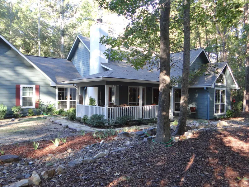 Fantastic drive up appeal on this "better than new" 2011 built 3/2/2 nestled on a beautiful wooded lot at Holly Lake Ranch. This home features an open concept, cathedral ceilings, exposed beams, raised stone wbfp and decorator colors & finishes throughout. Kitchen has granite counter tops, pop open skylight, pantry with pull-outs, eat in bar & includes refrigerator. Both baths have Travertine counters & master bath has double lavatories, tub & glass block shower. Dining room or 2nd living area has custom built wall unit & provides awesome views. Covered porch on front & wonderful covered deck on back. Low maintenance yard & hardi plank exterior. Extensive landscaping with flagstone walkways, sprinklers around the home, French drains & gutters with leaf guards.