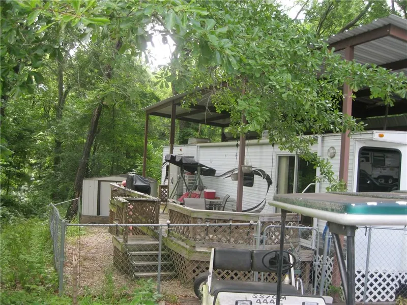 This property is a fenced lot with wood deck, and steel cover for your trailer or fifth wheel. There is also a storage building on property. Property goes back behind fenced area. Call for details. Great community with swimming pool, fishing pier, boat launch and community center. Fifth wheel on property to be removed.