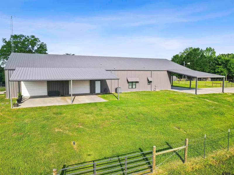 Come see and appreciate this nearly 55-acre custom East Texas retreat with 6,000+ SF under roof! Home offers 3,450 SF of living space with 3 oversized bedrooms, including a luxury primary suite with sitting area, walk-in closet w/ built-ins, and en suite bath featuring triple showerheads, tall walk-in shower, and double vanity. Open-concept living w/ vaulted ceilings, gas log fireplace, real wood finishes, custom lighting, quartz counters, tile throughout. Gourmet kitchen boasts built-ins, top-tier appliances, quartz island bar, huge walk-in pantry with hidden room. Bonus 450 SF upstairs ideal for second living space, game/media room or 4th bedroom. Laundry/mud room w/ cabinetry and sink. Attached 3,000 SF shop includes half bath, 3 roll-up doors (1 RV-sized), RV pad, generator, solar panels. Gated entry, fenced wrap-around yard, 2 stocked ponds, storm shelter, barn, carport, lean-to, tr...