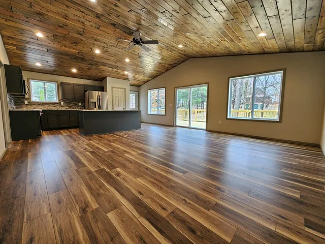 NEW CONSTRUCTION! This well designed and cozy 2 bedroom, 2 b athroom home is located in the beautiful Town of Rome, on a .383 acre lot with deeded access to Lake Sherwood. This exquisite home offers an open concept with vaulted ceilings, luxury vinyl flooring throughout, granite counter tops, new stainless appliances. Additional features include: beautiful wood ceilings, main floor bedrooms with attached bathrooms, main floor laundry hookup, a spacious wood deck, a freshly seeded yard and so much more! Enjoy the many amenities this community has to offer, particularly trail riding, water sports, endless fishing possibilities, and the famous Sand Valley Golf Resort! From vacation home to Airbnb, or year around living, this home checks all the boxes! Property is shown by appointment only. Call today to schedule your private showing today! Buy one adjoining lot for $22,000, or two adjoining lots for $44,000. You can create the perfect summer family spot or your own recreation space! Room for family and friends to visit with their campers and hook up to well/septic/electric.