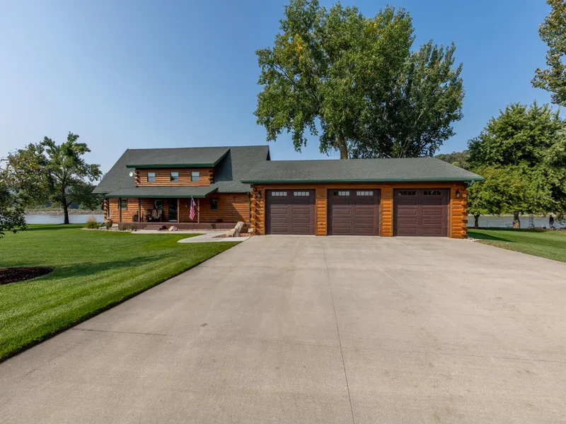 Come home to 10005 100th Street, lot 6 & 7 in Sloan, IA. Wake up to a beautiful view every morning! This home sits on 1.049 acres of land & has its own private boat dock that will be awaiting you. From your first impression to your last, this one is beautiful! Just inside the front door is an oversized entryway that leads you into your cozy living space. The living space offers real wood flooring from Thornton Flooring, big windows to overlook the river, & 25 ft vaulted ceilings. Your dining & living space is just off the living room, with new appliances & granite countertops. You have sliding doors from your dining room to the back deck. Your office space has a custom display for guns that is attached & has a built- in gun safe. In 2018, 700 sq. ft. was added on to make a new master bedroom with 15 ft vaulted ceilings with carpet throughout. And an oversized master bathroom with tub, walk in shower, double vanity custom cabinetry, & an oversized walk-in closet. You have 3 sets of sliding doors to your back deck for entertaining. Just up the beautiful stairwell to your second level loft is where you will find 2 more bedrooms, a full bathroom, a sitting area, & exercise space. Basement is completely unfinished. Let's talk about the attached 3 car garage that is oversized & features 10 ft ceilings. This space leaves room for storage, a fridge, workout space, & counter space. This TURN KEY property is ready with few exclusions being the master bedroom set, antique bedroom set upstairs, personal items, office desk, all pictures throughout home, 2 antique pieces in living room & 2 wood/tree branch stands in living space. Whether you're sitting inside, outside on your decks, or on the dock....you're never going to want to leave HOME!!! Things you should know: water sprinkler system, not in a flood plain, & state report passed well inspection. Whole outside was stained in August 2024. Add on in 2018, 700 sq ft.