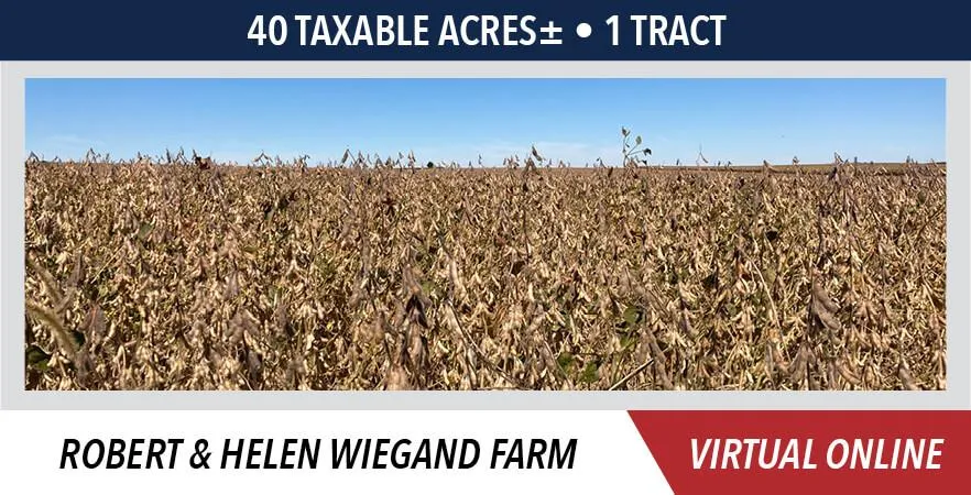 The property contains a total of 40 taxable acres, will be sold in 1 tract, and represents highly productive Class A farmland.