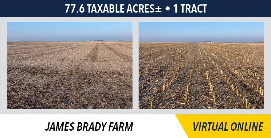 The James Brady farm will be sold on a price per acre basis, based on taxable acres.