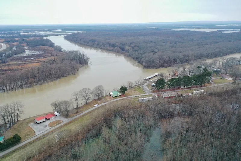 Roll right onto Arkansas' premier recreational river. This elevated river cabin on the White outside of Augusta brings lodging for the outdoor enthusiast to an entirely new level. Built on river frontage, this cabin offers high levels of function and form to please everyone. Want to make it to the prime spot on the first? It's best to have your boat already in the water and ready to go. That is easy here with your own section of river bank. Tie up the night before, and you can hit the door and be ready to go in record time. Relaxing after a day on the water? The spacious riverside deck (876 sq. ft.) offers plenty of space to unwind and entertain around the fireplace. With 1581 ft. sq. of interior space, the fun continues on the inside. With a professional caliber stove and massive amounts of counter space, the open floor plan living area is punctuated by the highly functional kitchen and enormous volume of natural light. The bedrooms (2) also raise the bar for river cabins, which are warm and inviting with wood flooring, warm natural light, and plenty of space. Located next door is a pay-to-launch ramp. Insurance rates are affordable through the Farm Bureau. Constructed on steel piers and beams, this home is tough and already elevated- a must on the riverside. Just above the August Bridge of the White River, this is an ideal location to launch your next hunting, fishing, or pleasure expedition. Do not miss this chance - call today.