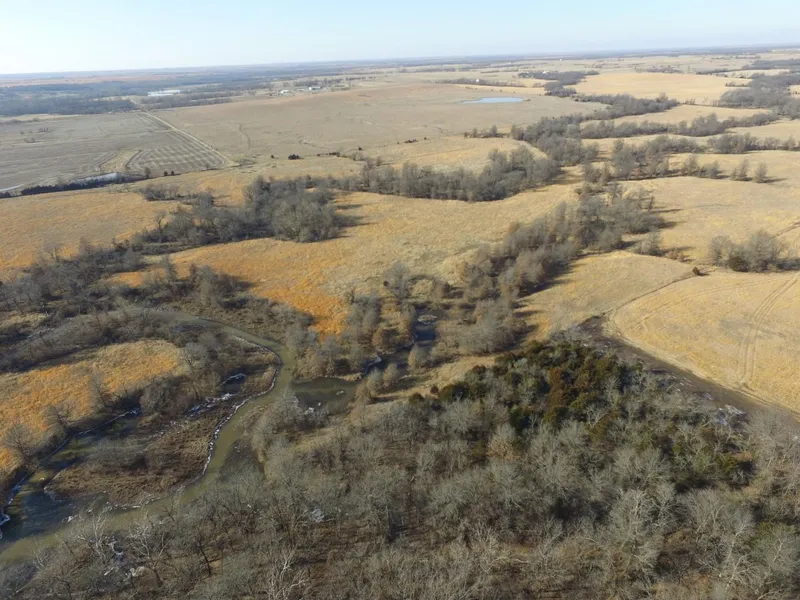 This is a rare opportunity to buy approximately 267 acres of prime Woodson County grassland. This tract has been well maintained over the years featuring clean Native grass, above-average fences, cross fencing, a well-constructed pipe catch-pen and some timbered draws for weather protection. All the tedious and expensive work has been done already with a beautiful cross-fenced setup that provides 3 separate grass traps of approximately 80 acres and will function wonderfully for a rotational grazing operation. Each grass trap has its own water supply with a total of three ponds and the east tract has a creek that carries running water most of the year with a timberline along School Creek.