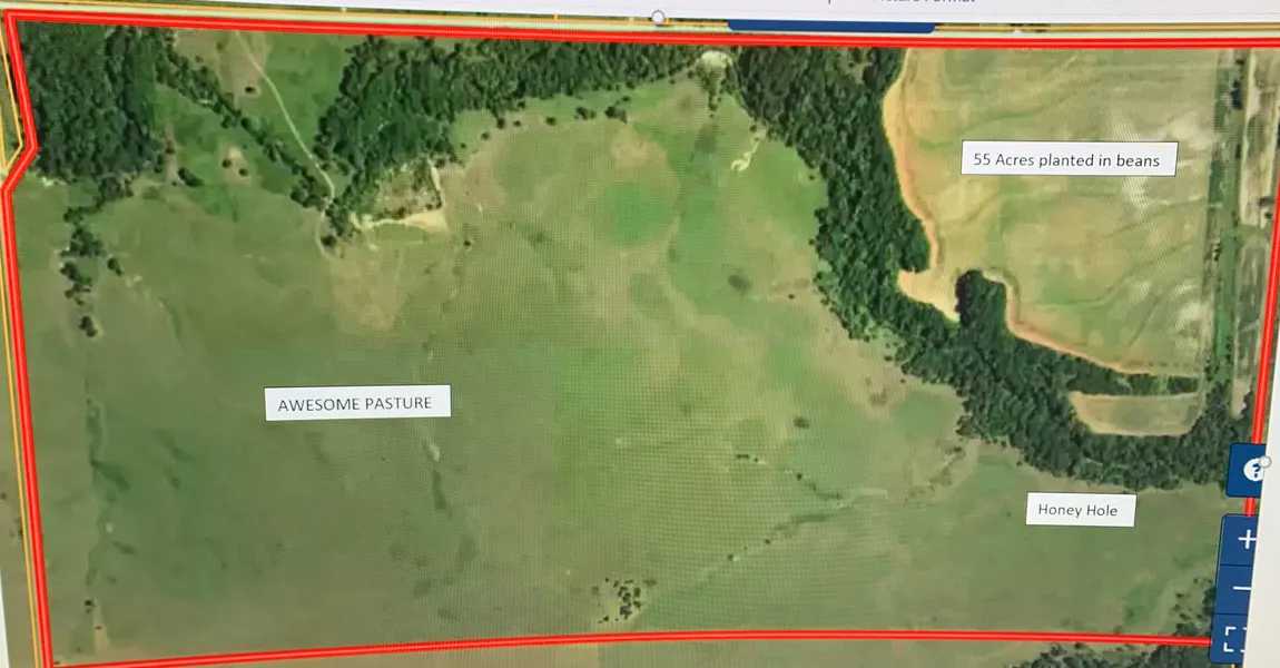 Woodson county prime deer and turkey hunting with crop income. Spring has brought this farm to life. Awesome pasture is ready for fall grazing. Seller has taken some timber off the property but hasn't made a dent. This is an awesome piece of property that has a creek running through the middle of the property surrounded by a large ravine. Tillable acres are on the east side of the property. If your looking to kill a large Kansas buck this is a piece of ground you need to consider. Beans are coming up well on the 55 acres of tillable ground.
